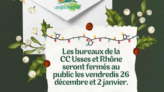Les bureaux de la CC Usses et Rhône seront fermés au public les vendredis 26 décembre et 2 janvier.