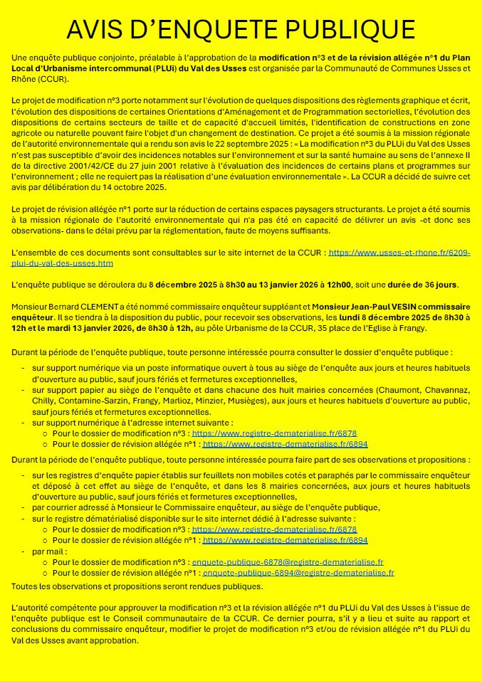 PLUi du Val des Usses : enquête publique modification n°3 et révision allégée n°1